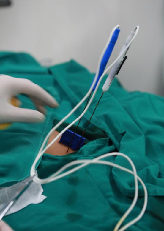 22 октября под контролем УЗИ и КТ по плану лечения, используя 2 электрода, пунктировали целевую область для абляции. Жизненные показатели пациента были стабильными в течение всего процесса, и процедура была успешна. Интраоперационное кровоизлияние составило около 0,5 мл.