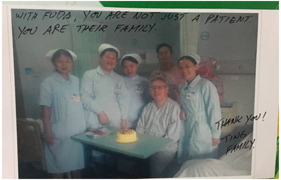 Сын г-на Тянь сказал медицинскому персоналу, -«В сентябре этого года мой отец умер, к сожалению, от инсульта и пневмонии. Он хотел оставить свои прекрасные паммяти в Больнице ФУДА - фото на день рождения его 70-летия». Он добавил, -« Мой отец был тронут вечеринкой по случаю дня рождения здесь. Он часто брал фото и ценил его некоторое время. Когда он возвращался дома, он также показал это нашей семье и родственнику».